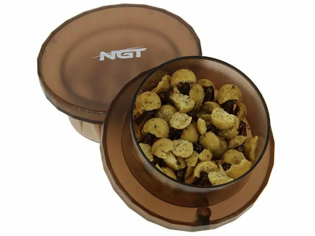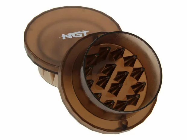 Gebruik deze Crusher om makkelijk je boilies, partikels, pellets of ander voer te malen. Stop je aas erin en draai aan de 2 helften om je aas te crushen. Hoe langer je draait hoe fijner je karperaas wordt.